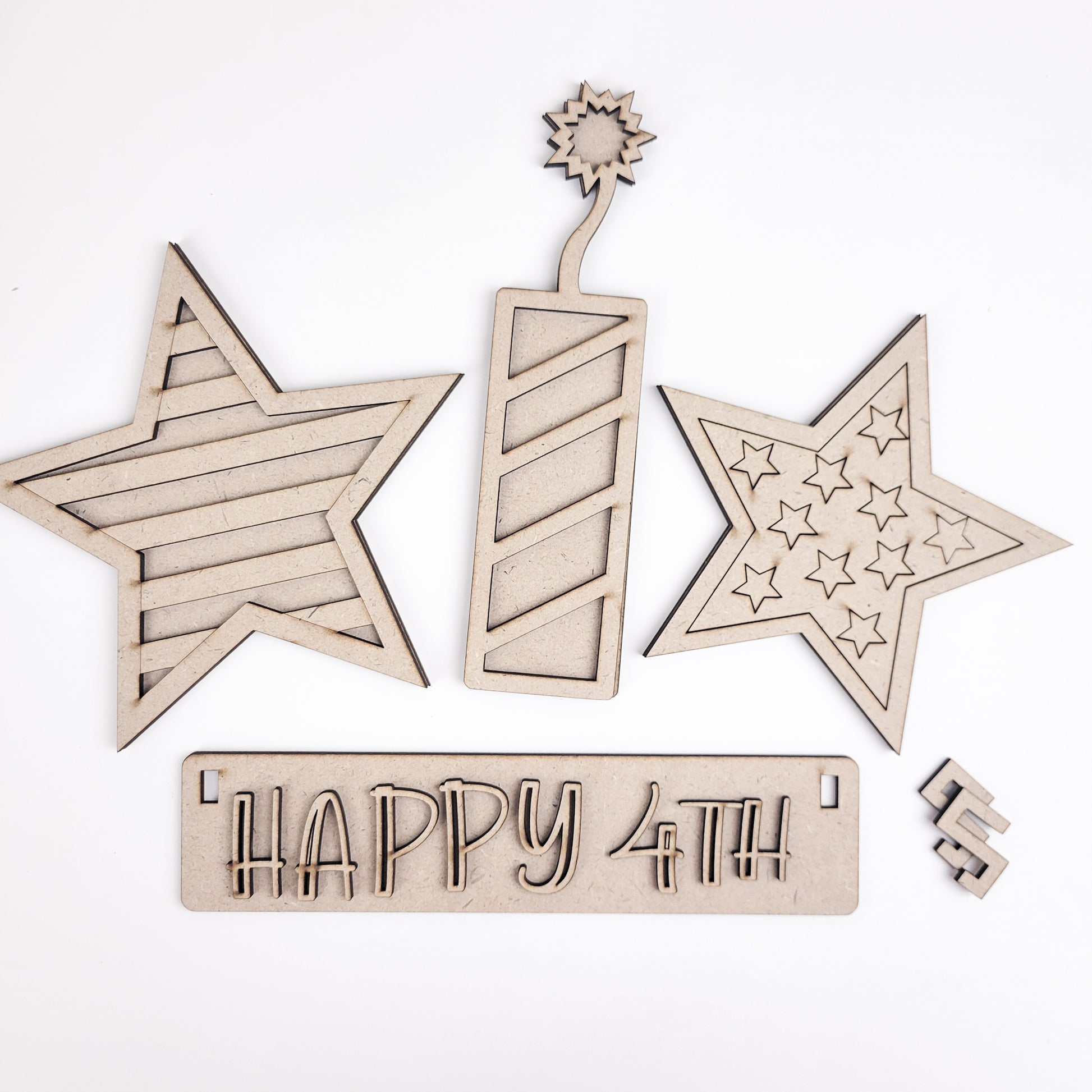 • All pieces unfinished (not painted and not glued down)