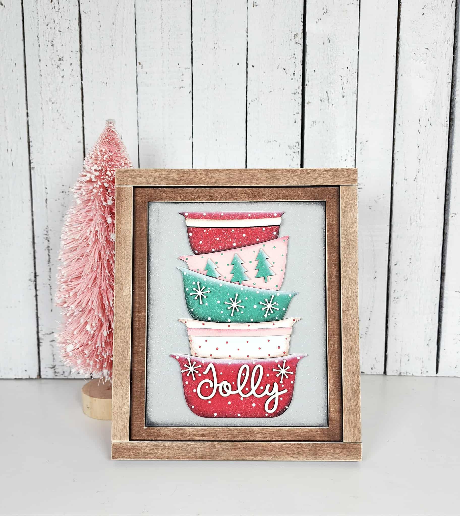 Bring the cozy magic of holiday baking into your home with this Christmas Baking Mini Sign Set + Interchangeable Frame DIY Paint Kit! This kit includes three festive mini signs — “Jolly” stacked bowls, “Baking Christmas Cheer,” and “We Whisk You a Merry Christmas” — along with a wooden frame designed to easily swap signs for every season or collection.