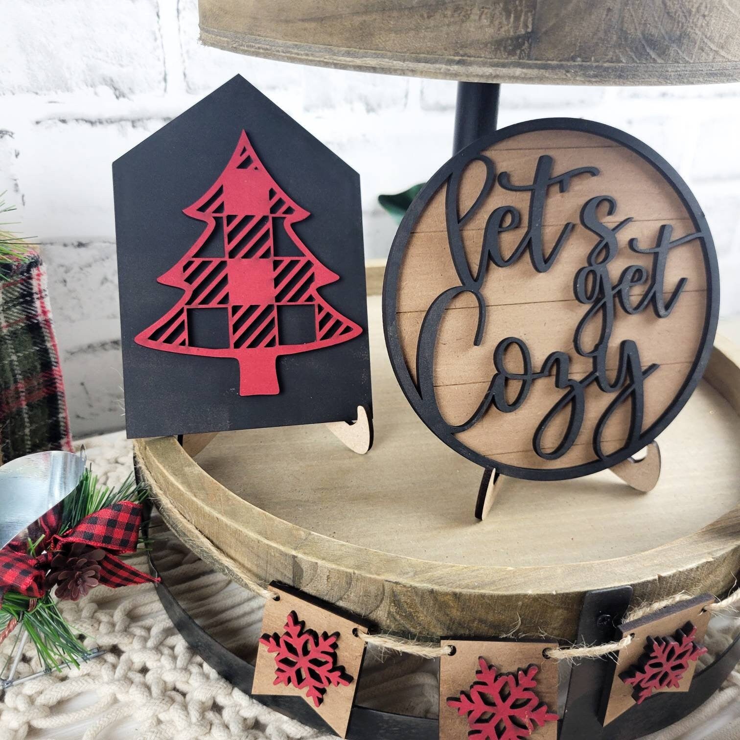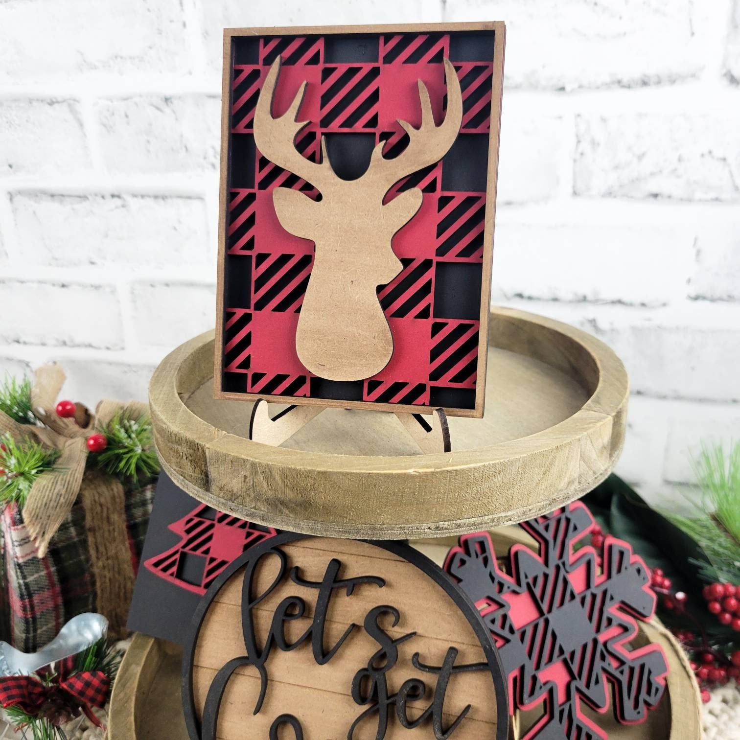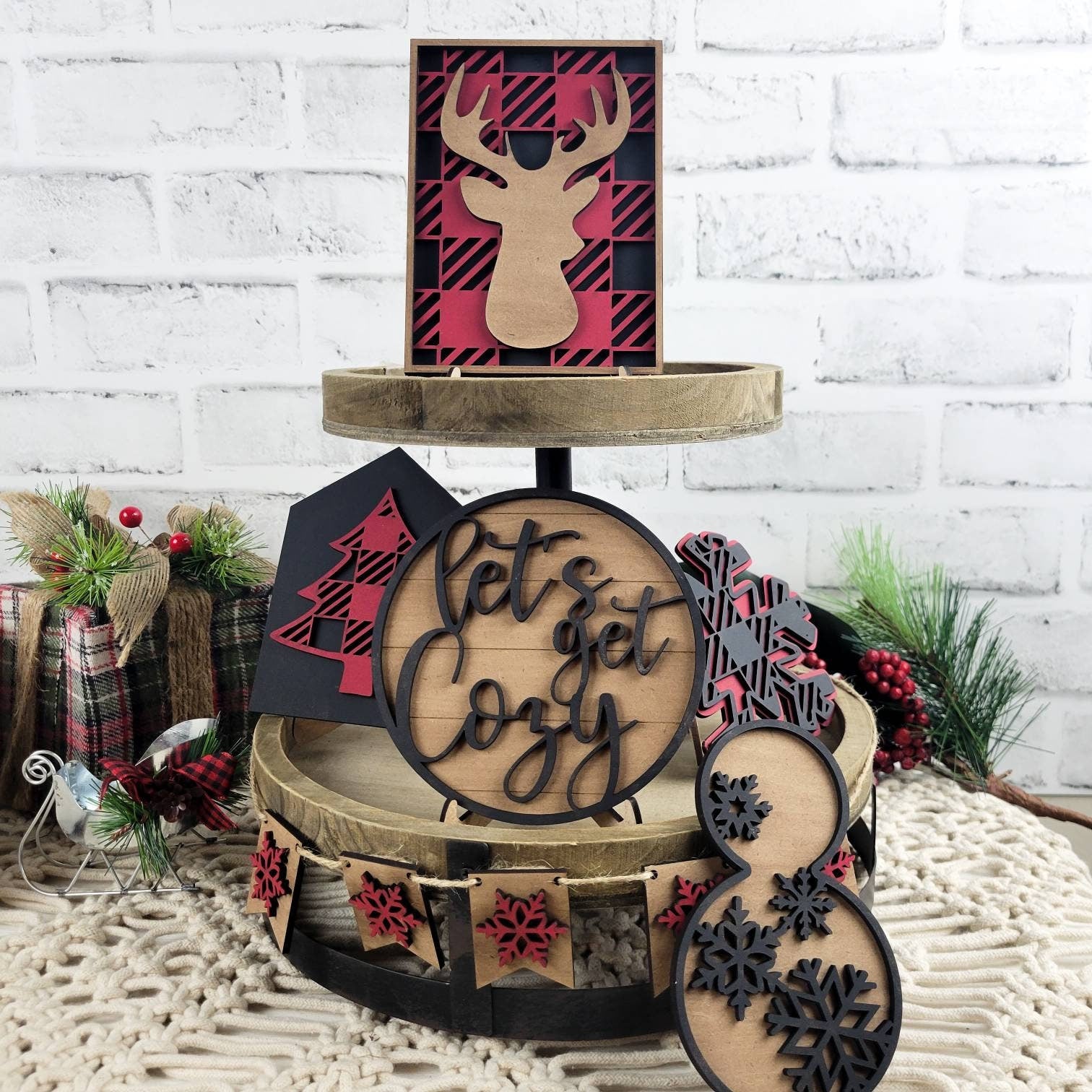 Cozy Plaid Christmas Tiered Tray DIY Paint Kit