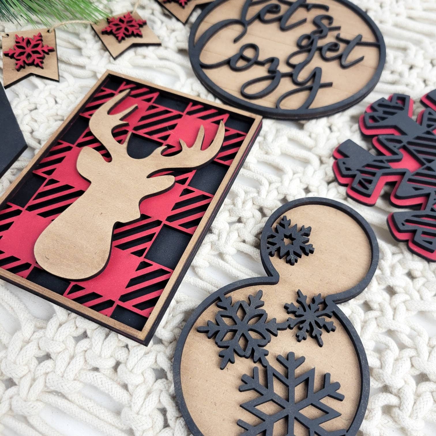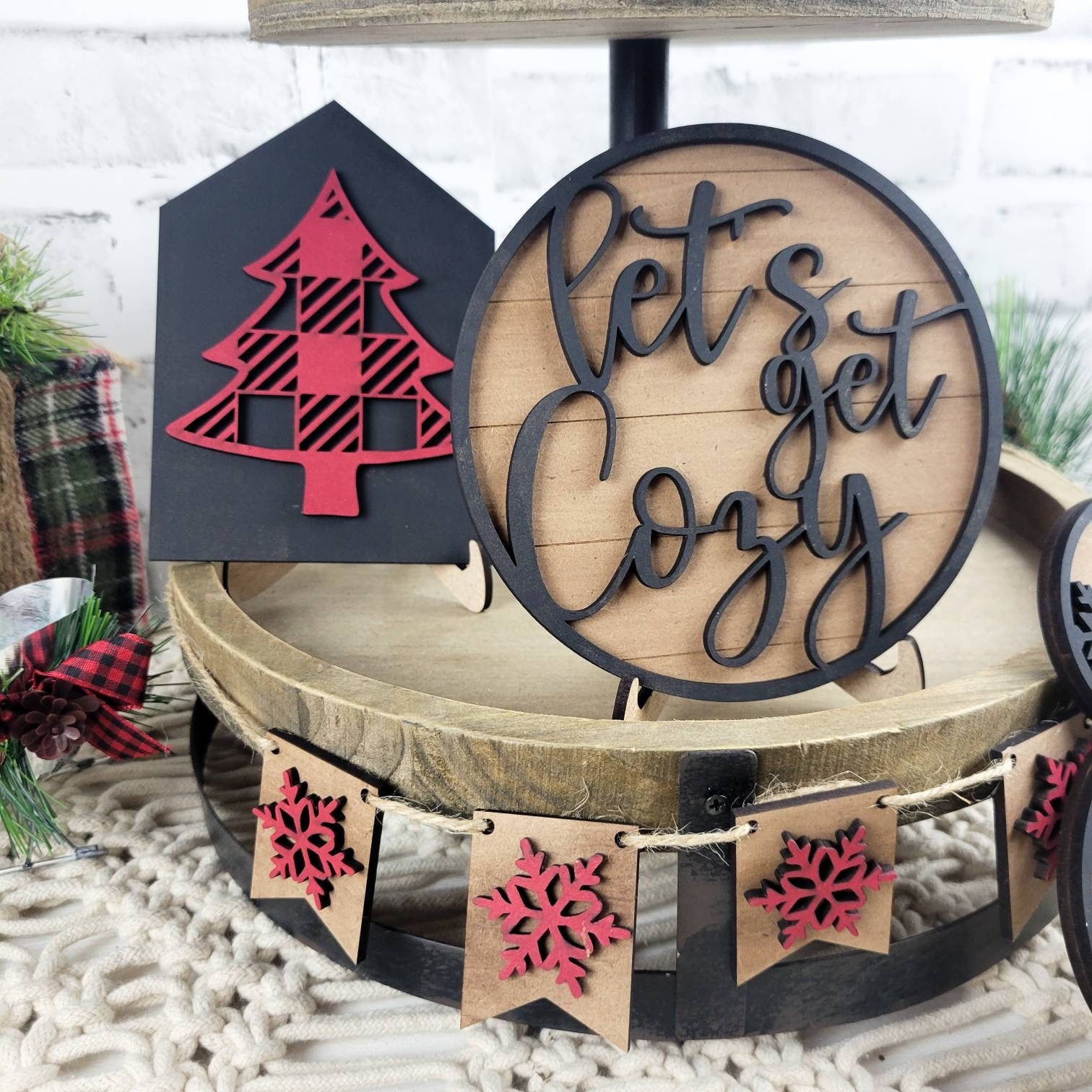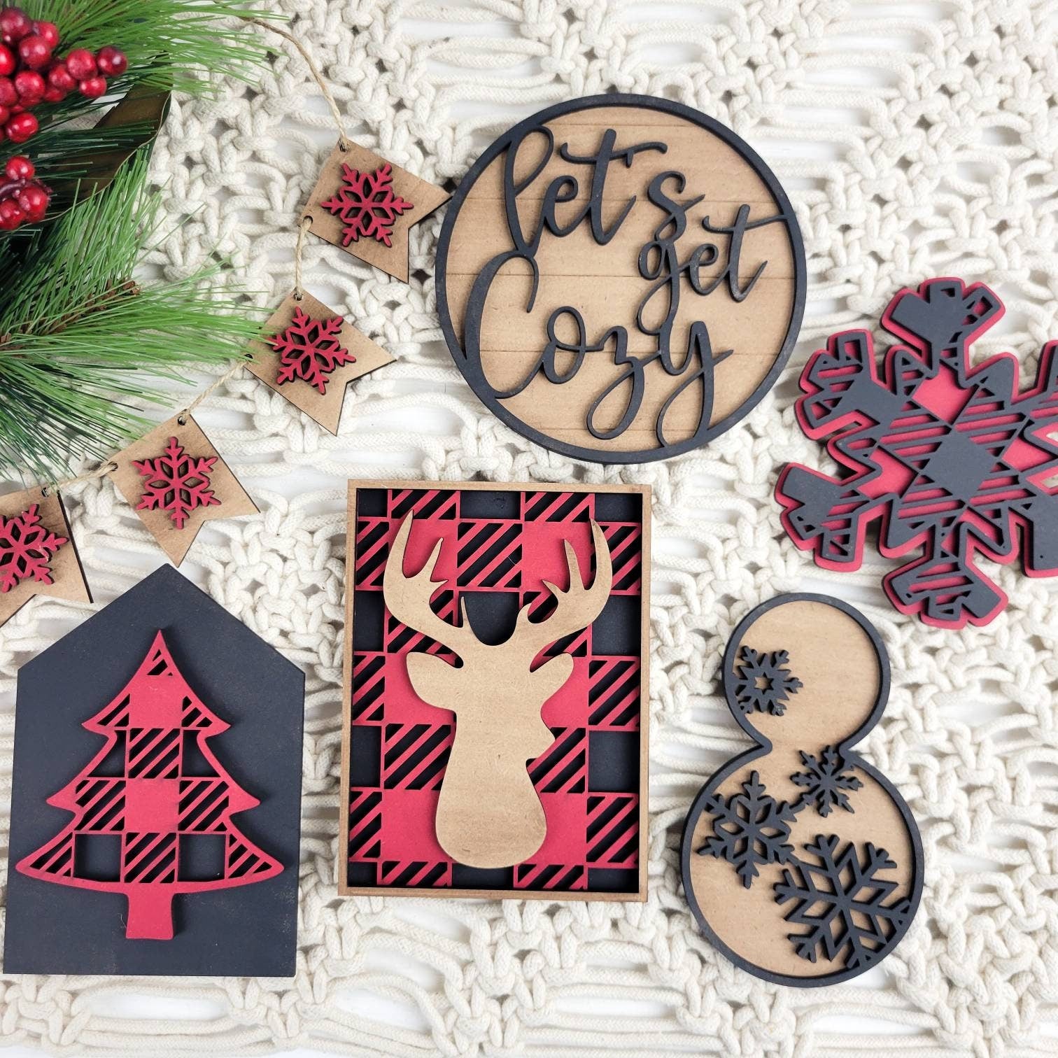 Cozy Plaid Christmas Tiered Tray DIY Paint Kit