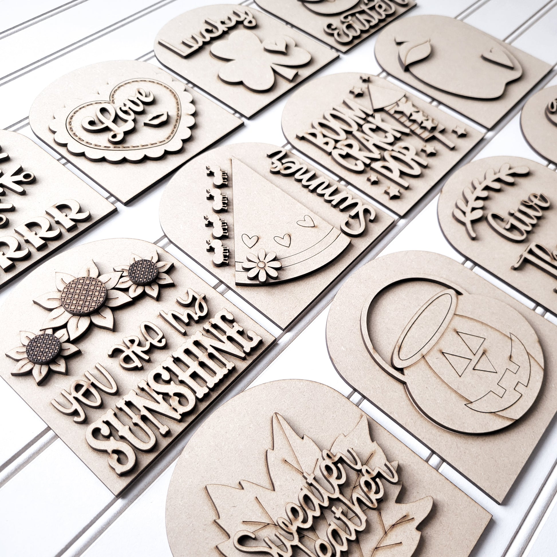 These seasonal inserts are made to fit perfectly inside our interchangeable arched frames (sold separately), making it easy to refresh your decor for any holiday or celebration! Each insert is laser-cut from smooth MDF and comes ready to paint, decorate, and personalize. Whether you're crafting solo or hosting a paint night with friends, you'll love how simple it is to swap out inserts and bring new life to your home decor again and again. Signs measure approximately 5.25" tall by 4.5" wide and fit perfectly inside any of our arched frames.