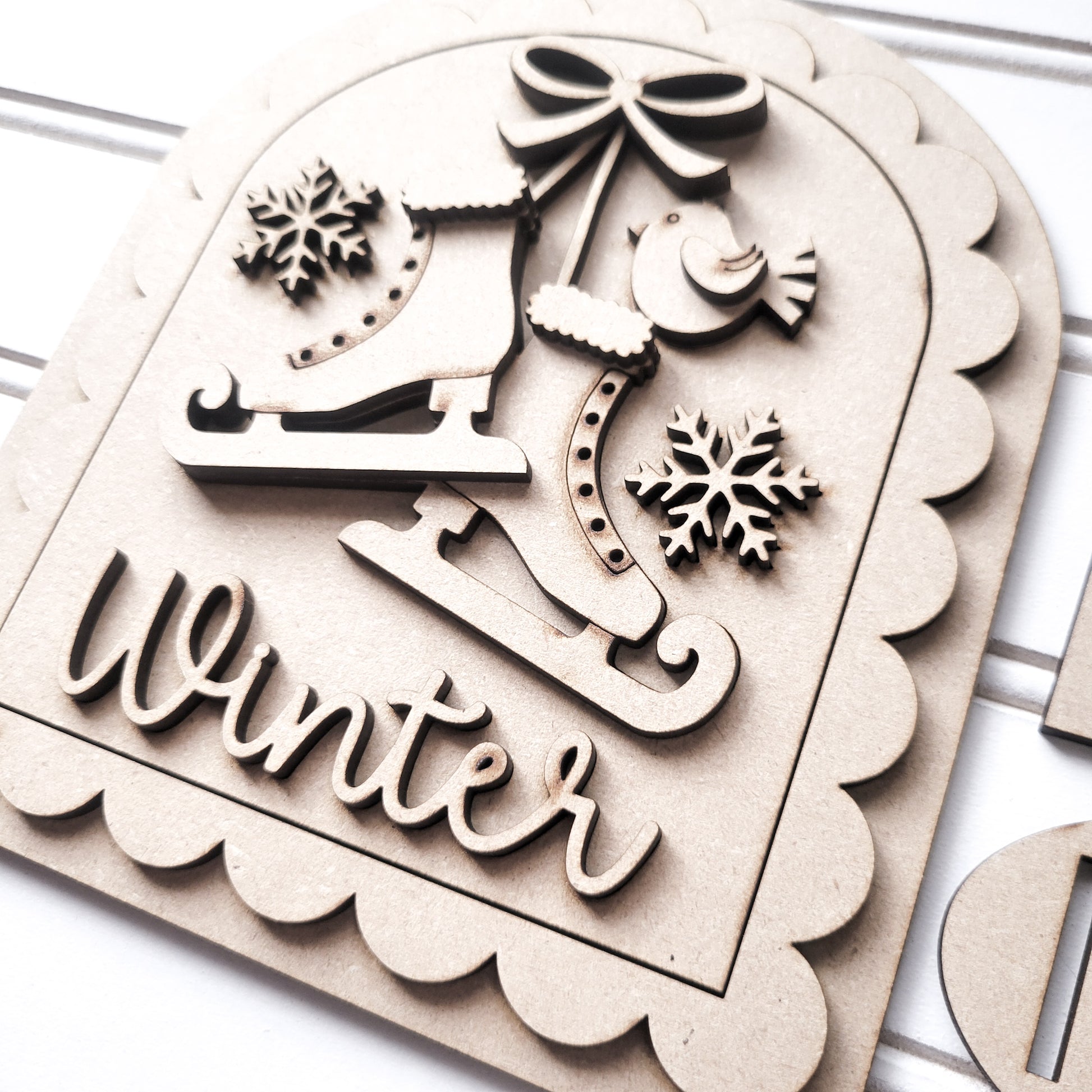 These seasonal inserts are made to fit perfectly inside our interchangeable arched frames (sold separately), making it easy to refresh your decor for any holiday or celebration! Each insert is laser-cut from smooth MDF and comes ready to paint, decorate, and personalize. Whether you're crafting solo or hosting a paint night with friends, you'll love how simple it is to swap out inserts and bring new life to your home decor again and again. Signs measure approximately 5.25" tall by 4.5" wide and fit perfectly inside any of our arched frames.