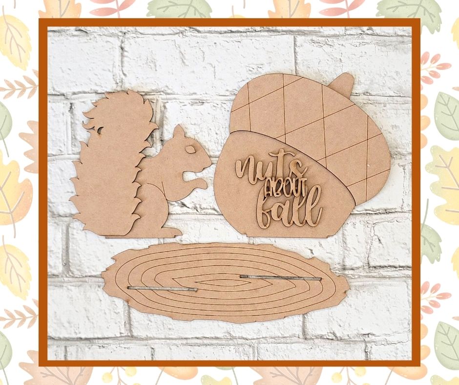 Create a fun Fall shelf sitter that celebrates the season with the Nuts About Fall DIY Kit! This fun diy kit features easy-to-assemble layers that even novice artists can master. Watch your masterpiece come to life as you bring the perfect fall decor into your home! #paintparty.