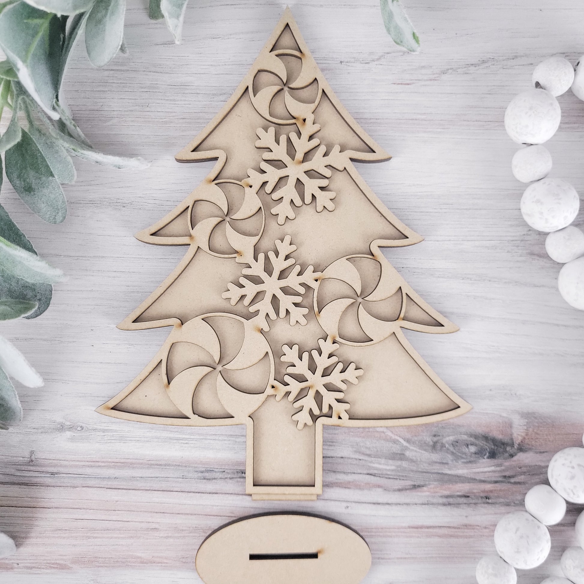 Peppermints & Snowflakes Standing Christmas Holiday Tree