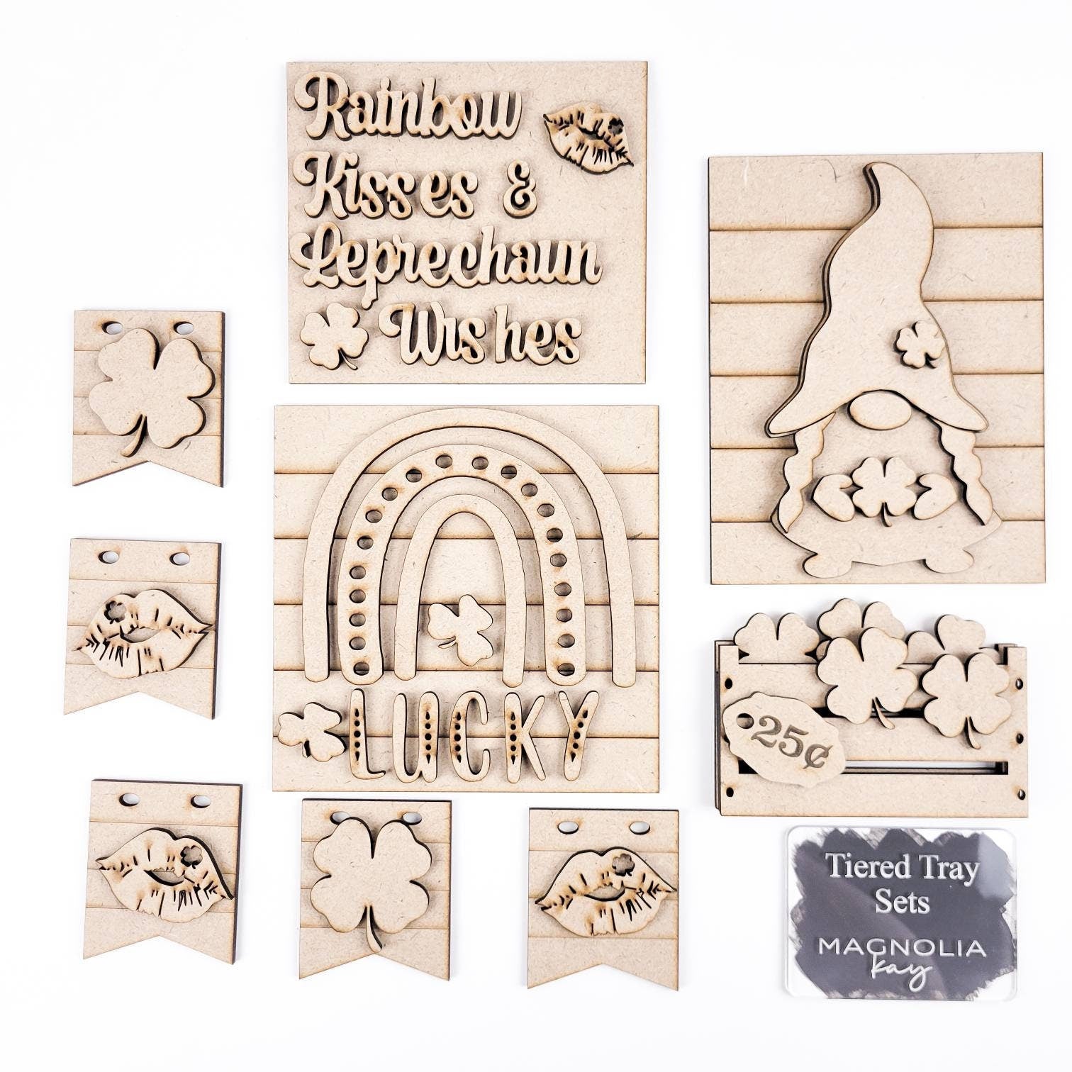 Rainbow Kisses and Leprechaun Wishes St. Patricks Day Tiered Tray DIY Paint Kit
