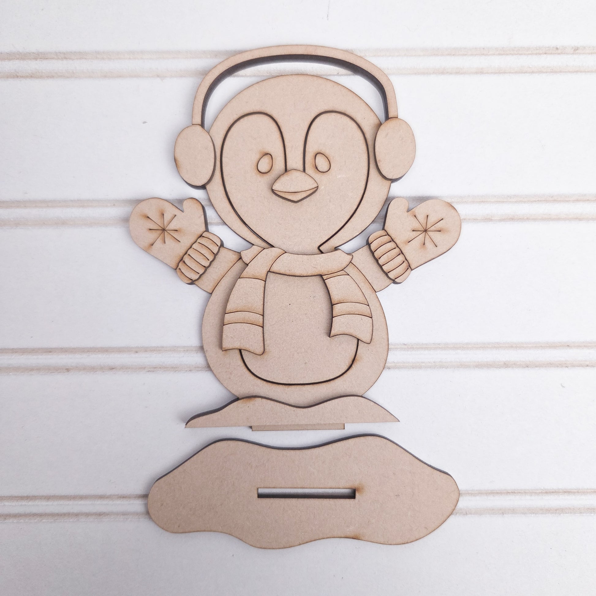 ❄️ DIY Standing Penguin Paint Kit – 5” Winter Penguin Craft | Tiered Tray Decor | Unfinished Wood Kit