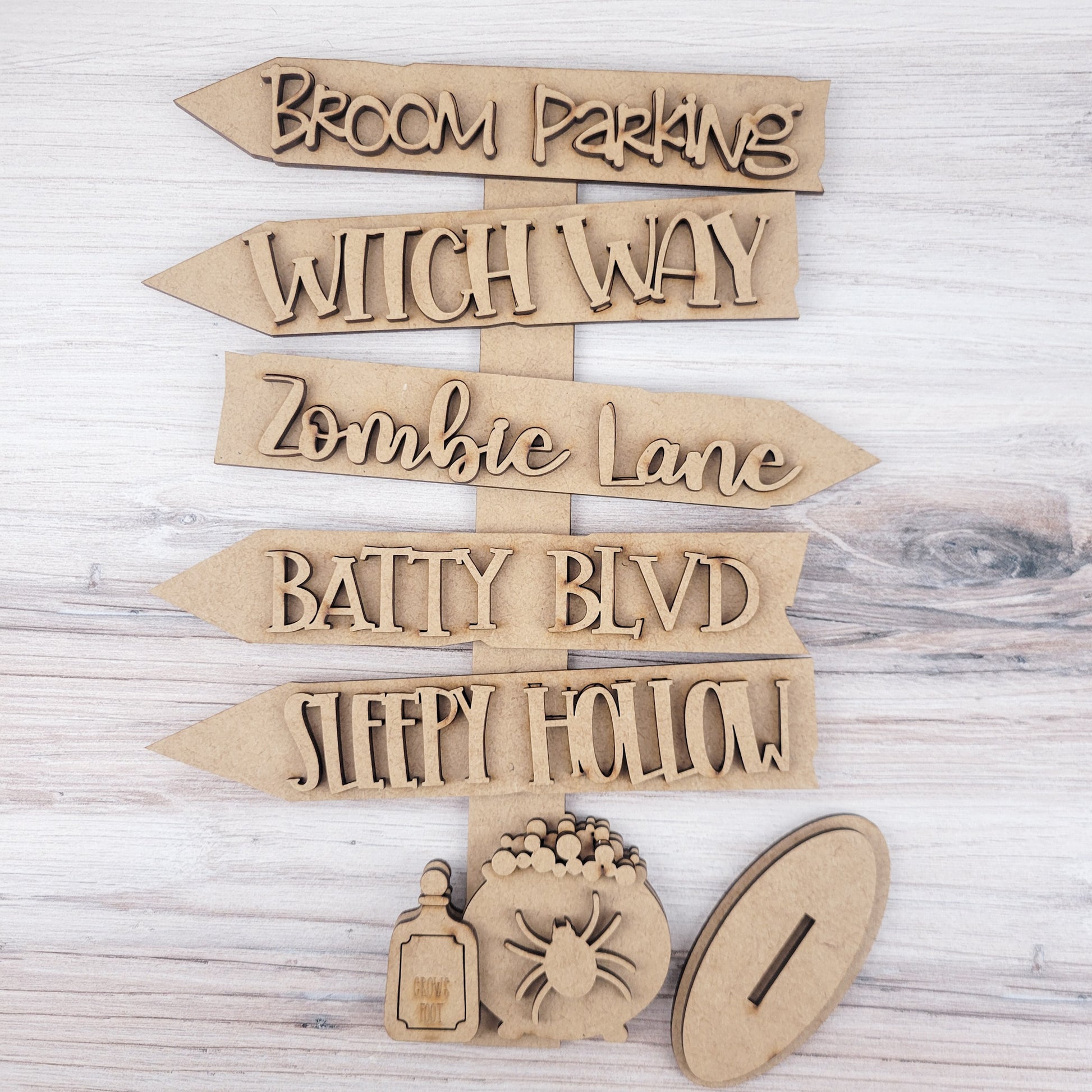 Spark your family's creative spirits this Halloween with our Witches Cauldron Halloween Directional Sign DIY paint kit! This spooky decor shelf sitter comes in layers so that painting it is a fun and easy project for everyone to enjoy. Bring joy and excitement to your Halloween with this delightful diy decor!